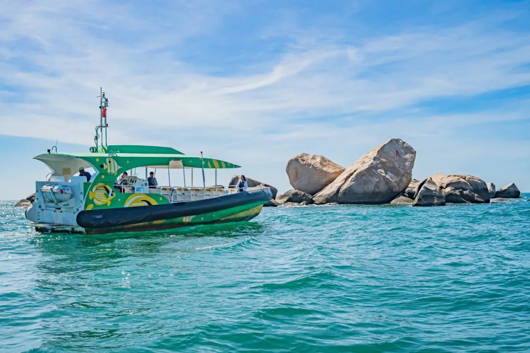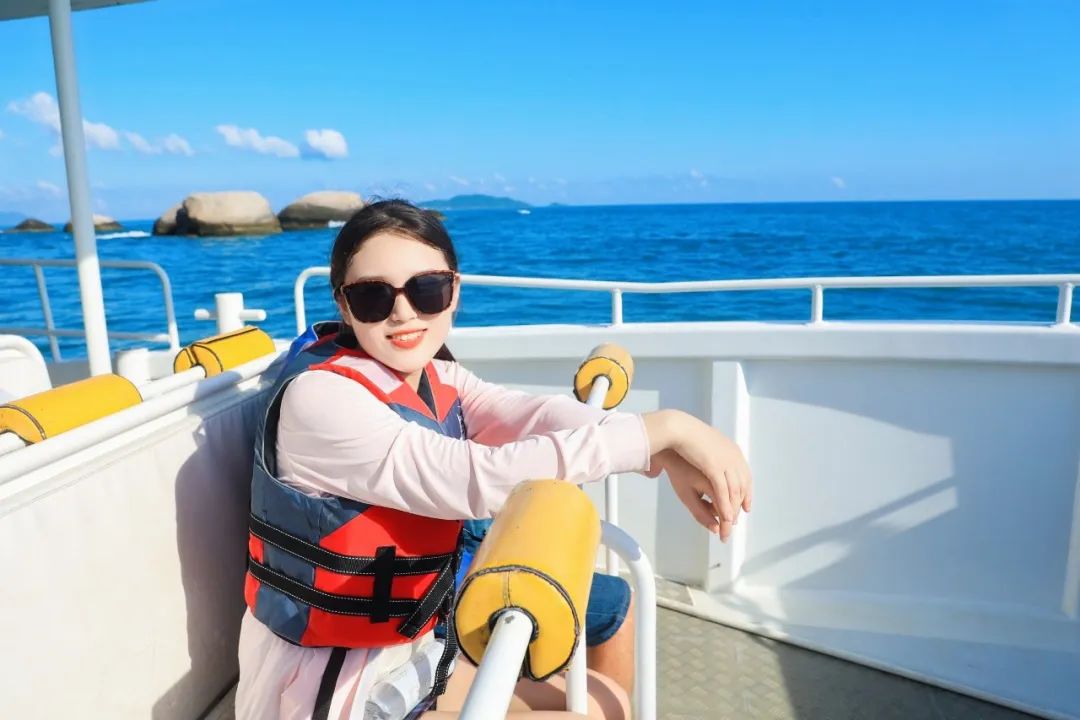 乘坐海上观光艇在海上,可以欣赏到美丽的海景和海岛风光,大海的广阔深邃展现大自然独特的一面,碧海蓝天的美景令人心旷神怡。