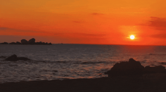 在天涯海角,浪漫的事少不了追逐日落,在天涯橘子海沙滩吧,寻一个绝佳观落日位置,尽情沉溺于漫天的晚霞中,看落日一点点没入海面,浓烈的霞光染出一片橘子海,每一帧都是梦幻的绝美景象......