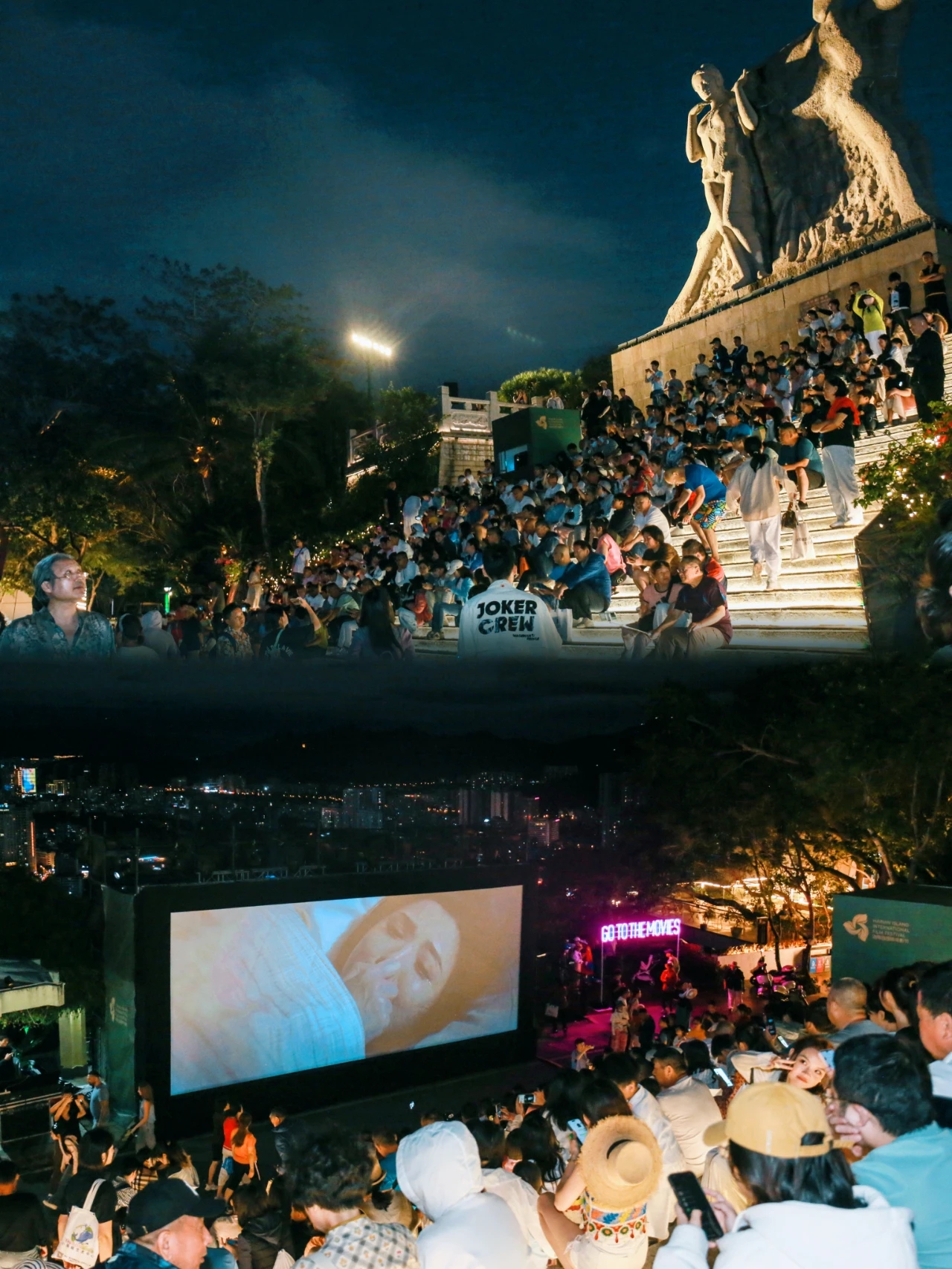 三亚鹿回头风景区分会场,以影片放映为主线,结合电影主题集市、影视金曲音乐会、电影知识竞赛、三亚特定电影氛围打卡等丰富的周边活动,让市民、游客在娱乐中观影,又在观影中享受三亚美景。