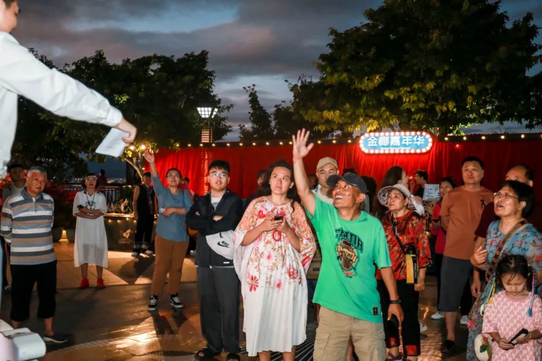 18时20分许,鹿回头风景区山顶雕塑区域已站满了前来观影的群众,情侣、亲子组合也不在少数。