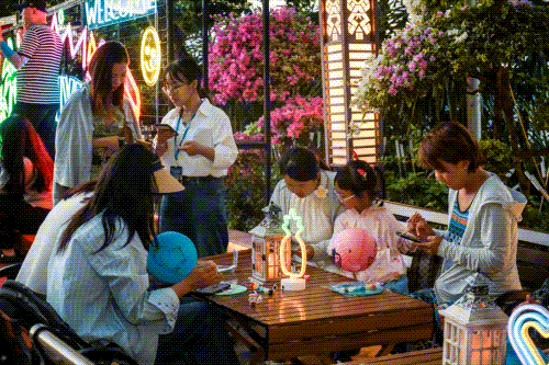 在电影放映的其他时间,大家可以逛一逛主题市集,听一场浪漫音乐会,打卡现场精美布景,体验别样的电影艺术氛围。