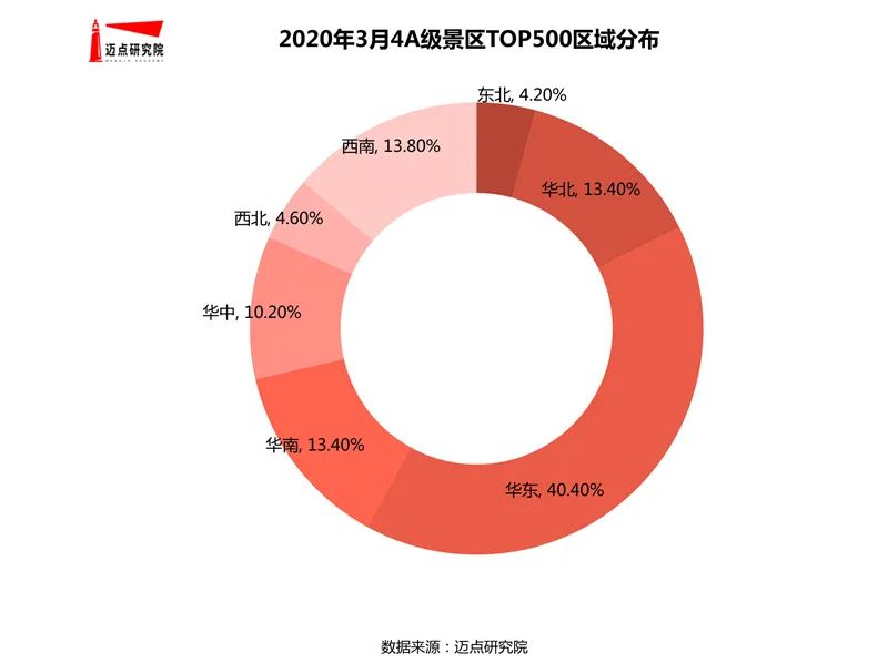 3月伴随各地疫情防控形势逐步向好,全国各地4A级景区开始按下“复苏键”。经迈点研究院数据监测,除华东地区景区上榜数量呈小范围下降外,其他区域均呈现出不同程度的上涨,其中,西北华中增幅最为显著,环比增长分别高达9.52%和8.51%,西南华北复苏迹象较为明显,区域内景区上榜数量稳中求进,较上月有所突破。