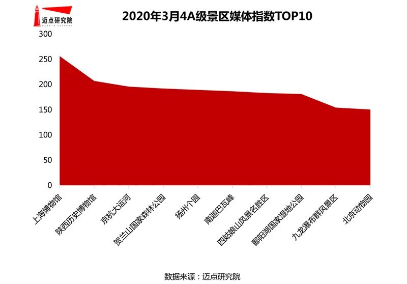 在本月迈点研究院最新发布的“2020年3月4A级景区品牌500强榜单”中,上海博物馆、陕西历史博物馆、京杭大运河、壶口瀑布、四姑娘山风景名胜区、北京动物园、扬州个园、成都大熊猫繁育研究基地、天涯海角游览区、稻城亚丁风景区位列TOP10。具体榜单如下: