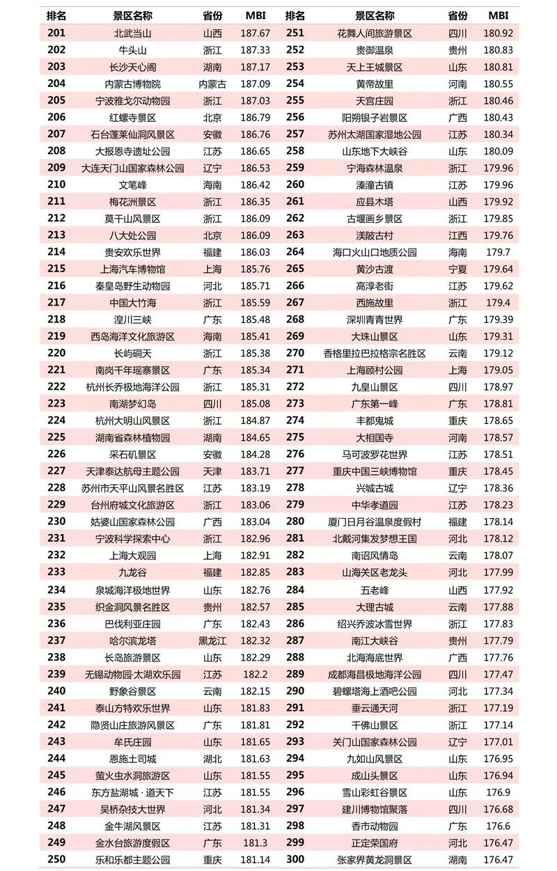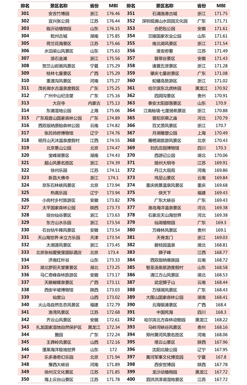 “2020年3月4A级景区品牌500强榜单”数据来源于迈点品牌指数MBI,根据3月迈点品牌指数MBI的2764个4A景区数据汇总统计而成。具体说明如下: