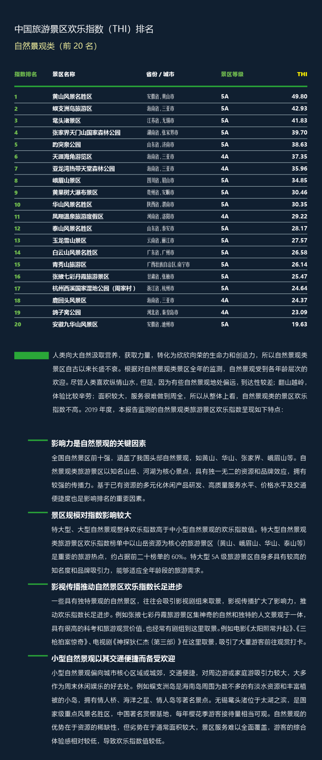 “中国旅游景区欢乐指数(THI)”研究运用大数据挖掘和分析技术,将语义分析技术引入旅游评价领域,通过在全国选取1181个景区样本开展为期一年的旅游大数据的跟踪研究,研究所设计的景区分类以中国旅游景区协会发布之团体标准《旅游景区分类》(T/CTAA0001-2019)为依据,从研究的底层逻辑上实现对传统评价方式的完善。基于游客在游玩后的线上评论数据,通过评论的语义识别转化成可量化的指数精准客观地反映游客体验、跟踪消费者偏好提供了支持工具。