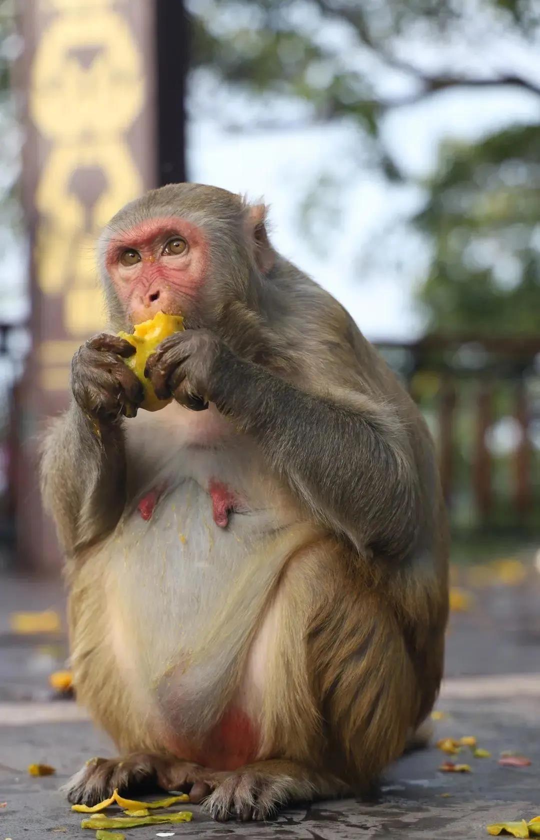 它们是贪嘴的小家伙,猕猴以植物性食物为主,属杂食性动物。如果你带有吃的,尤其水果、饼干等,可要藏好,小心被贪吃的猕猴夺走。
