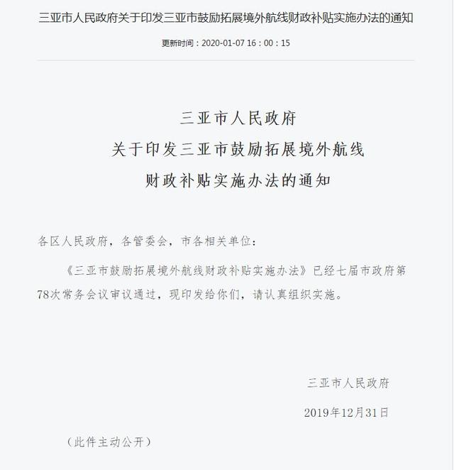为确保三亚境外航线持续健康发展,三亚结合近年来境外航线拓展实际情况,对补贴标准等进行了相应调整。《办法》明确了三亚境外航线拓展的补贴范围和标准。