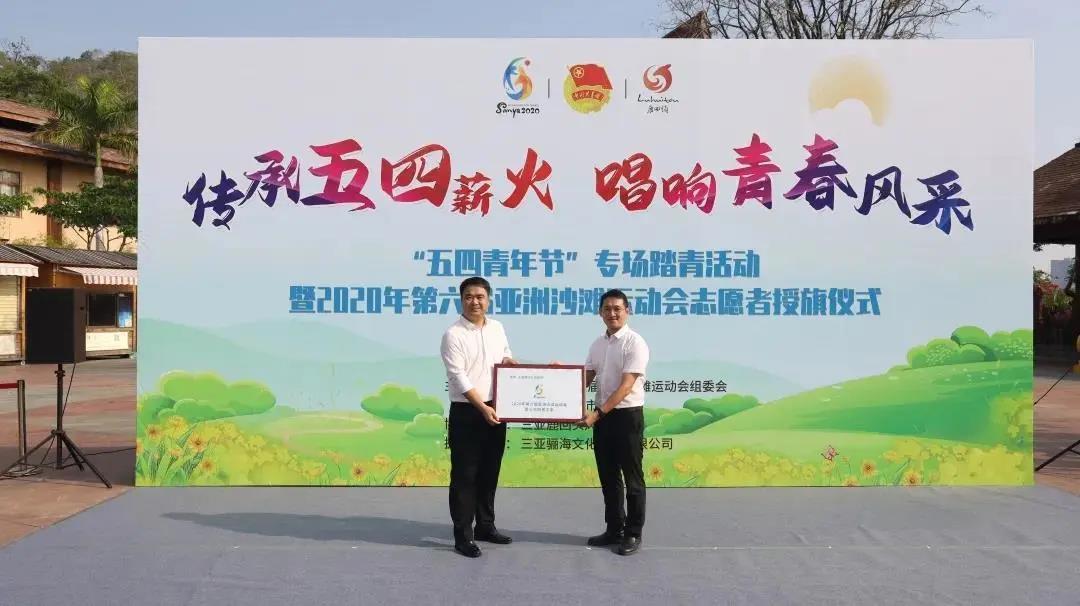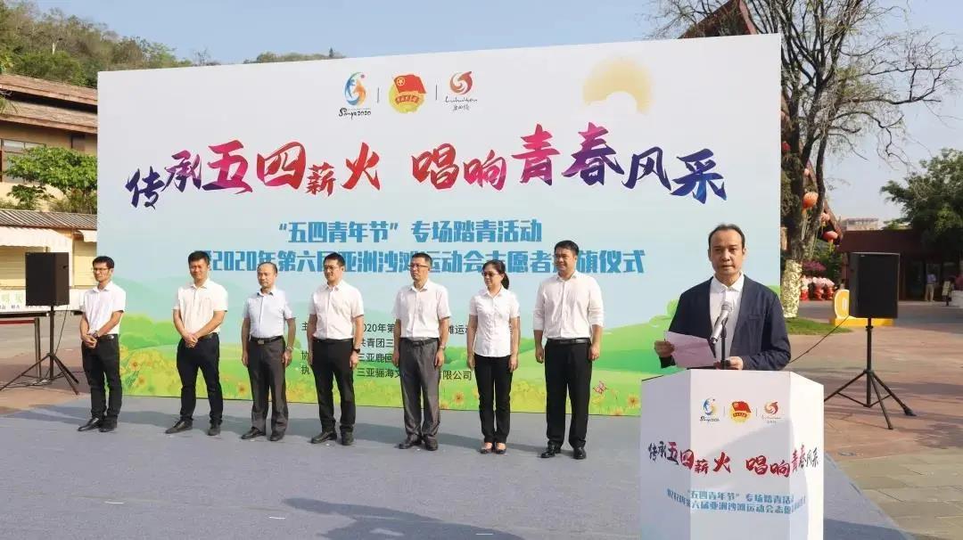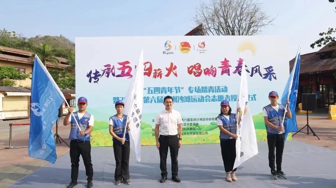 4月28日上午,2020年第六届亚洲沙滩运动会(以下简称“亚沙会”)组委会与共青团三亚市委在鹿回头风景区联合举行首家“亚沙会爱心志愿者之家”授牌仪式暨“五四青年节”专场踏青活动。亚沙委工作委员会副秘书长、三亚市政府副秘书长叶凯中主持仪式。