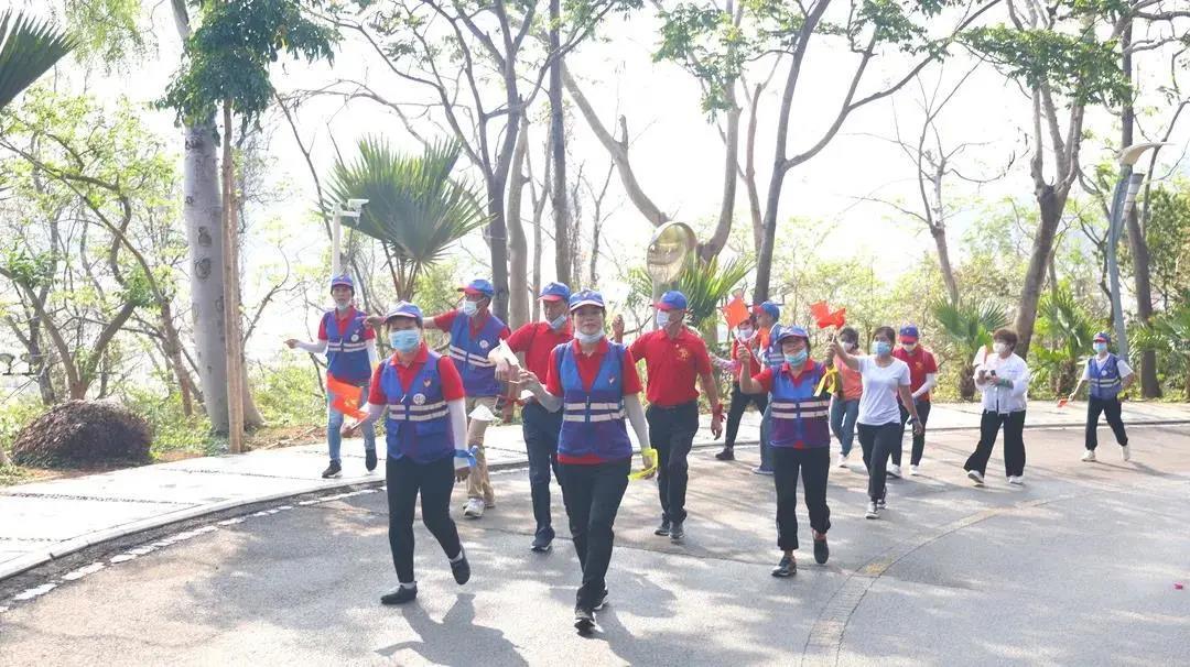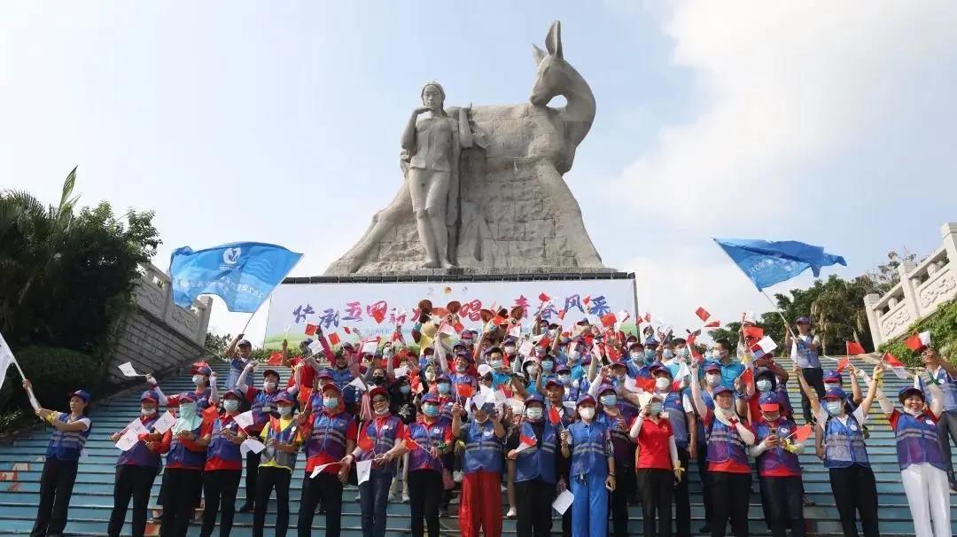 在授旗、授牌后,亚沙会组委会副秘书长、亚沙委执行副主任、三亚市副市长周俊宣布“五四青年节”专场踏青活动正式启动。全体青年代表沿着鹿回头景区内环山踏青,在鹿回头雕像下,他们合唱《五月的花海》,并合影留念。