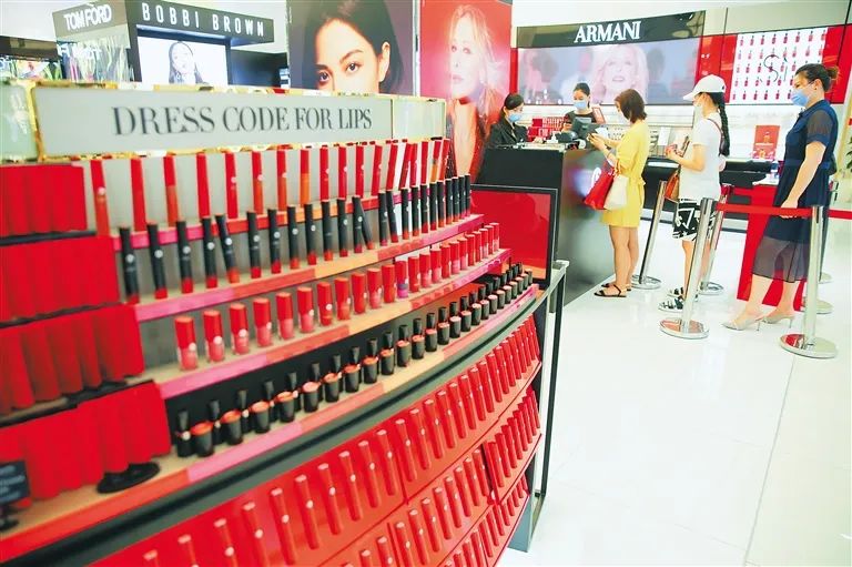 ↑“五一”假期,海口市日月广场免税店,消费者在购买免税商品。海南日报记者 张茂 摄
