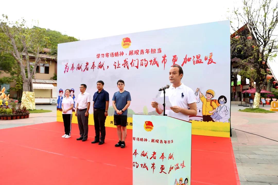 华侨城(海南)集团助理总经理、三亚鹿回头旅游发展有限公司总经理赵传建代表鹿回头风景区致辞。在致辞中表示,作为三亚市属国有企业,旅文集团坚决贯彻习近平总书记关于打赢新冠肺炎疫情阻击战的重要指示精神,第一时间以战斗姿态投入疫情防控,在疫情面前积极贡献国资企业力量,展现国企担当。与此同时,我们也将组织公司党员、团员参加此次活动,充分培育和践行社会主义核心价值观,大力弘扬奉献、友爱、互助、进步的志愿服务精神,展现我们青年奉献者的风采和精神面貌,以更饱满的热情和更加昂扬的斗志投身到三亚文化旅游事业中。