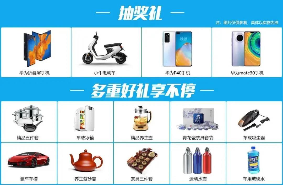 主办方在活动现场准备了抽奖环节,手机、电动车、景区门票、车载冰箱、豪车模型等礼品都会在现场抽奖送出!