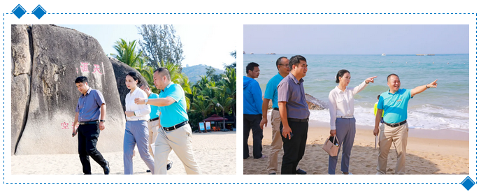 调研走访中,梅开志总经理详细了解了各成员企业疫情防控、复工复产以及采取超常规举措促进消费等工作开展情况,实地查看了亚沙会开幕式场地、天涯海角游览区新游客中心、大小洞天旅游区婚拍基地等项目建设进展情况,并召开座谈会认真听取了各成员企业主要工作开展情况及下一步发展规划的汇报,就相关问题与参会人员进行了沟通交流。