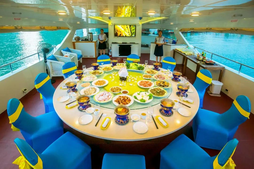 “没有旅行社的团队游客,永乐号大船开不起来,我们就转向开发小而精的高品质旅游产品。”海南航程旅游发展股份有限公司总经理李杰说。游船固定发船时间为每天12时和18时,也可自行预约时间,每船限制13人以内,通过一船一桌定制,为游客提供私舫餐。