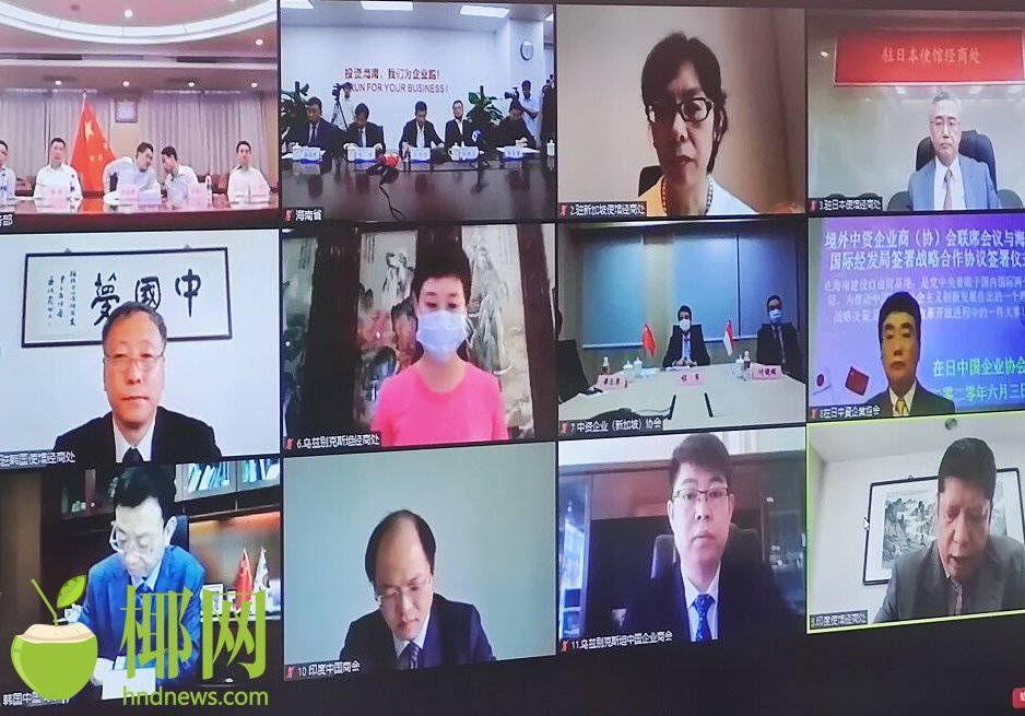 商报全媒体讯(椰网/海拔手机端记者 陈勇合) 6月3日下午,首批境外中资企业商(协)会联席会议成员与海南国际经济发展局战略合作签约仪式暨海南自贸港重点产业投资机遇推介会通过“云视频”方式举办。商务部副部长钱克明,海南省副省长沈丹阳出席活动并致辞。新加坡、日本、韩国、印度、乌兹别克斯坦等50多个国家的境外中资商会会长和成员企业代表以及相关驻外经商机构负责人共200余人参加视频会议。海南国际经发局局长韩圣健介绍了海南自贸港重点产业投资机遇。