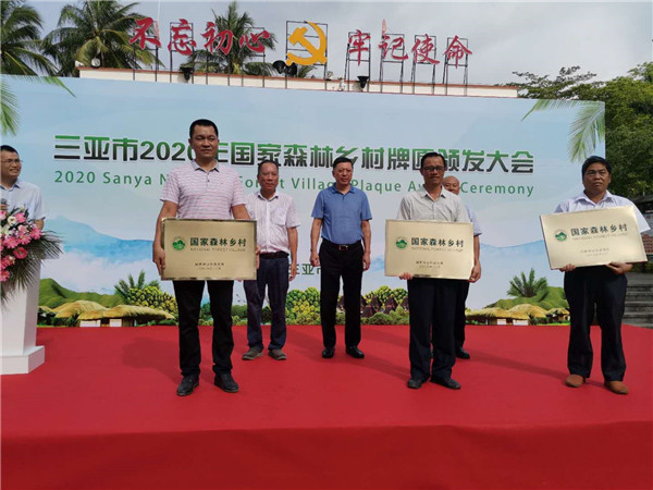 三亚新闻网6月4日消息(三亚传媒融媒体记者 李少云 袁燕)森林乡村,指的是乡村自然生态风貌保存完好、乡土田园特色突出、森林氛围浓郁、森林功能效益显著、涉林产业发展良好、人居环境整洁、保护管理有效的生态宜居乡村。6月4日上午,三亚2020年“国家森林乡村”牌匾颁发大会在三亚市天涯区文门村举行,大茅、中廖、抱安、那会、抱前、台楼、文门、青塘、北山等9个于2019年先后两批入选“国家森林乡村”的三亚乡村,正式挂上了“国字”牌匾。