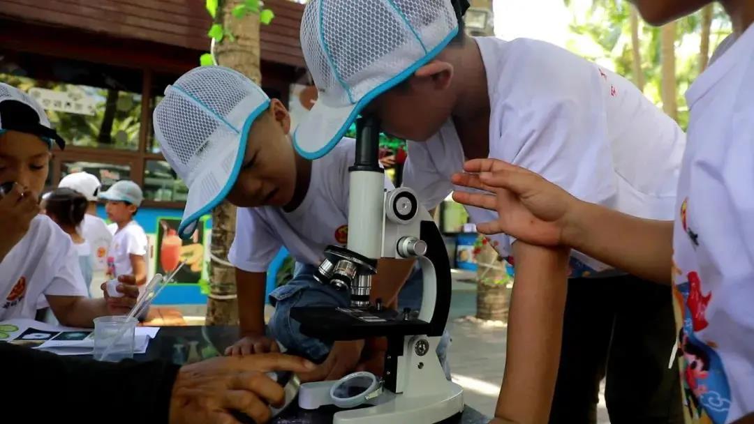 安装好显微镜之后,对光并调焦,盖上盖玻片,用吸水纸吸去多余的水,将载玻片放在显微镜下观察,自然水域里的水,微生物种类繁多,孩子们可以观察到许多微生物。