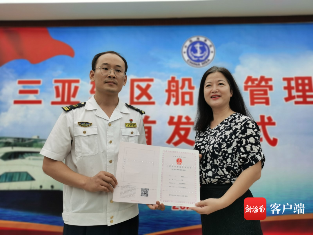 6月12日,海南海景乐园国际有限公司三亚蜈支洲岛旅游区、海南航程旅游发展股份有限公司、三亚洋海船务实业有限公司、三亚鸿洲游艇会有限公司等4家公司相关负责人从三亚海事局领取到首批《三亚辖区船舶管理证书》,标志着三亚游艇等船舶证书“多证合一”改革试点工作正式落地。三亚通过积极推动海事行政审批制度创新,大幅精简办证流程、材料及时间,为企业、船方提供“一纸申请、一次申办、统一发证”的“快办快结”服务,多举措优化营商环境,服务海南自贸港建设。