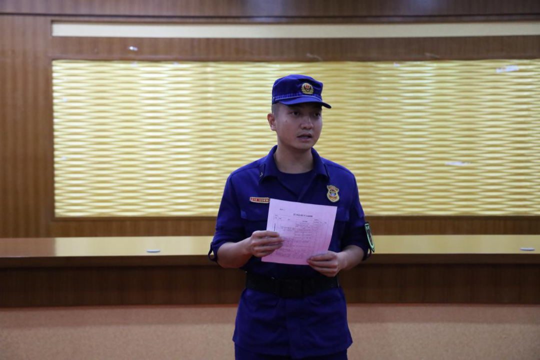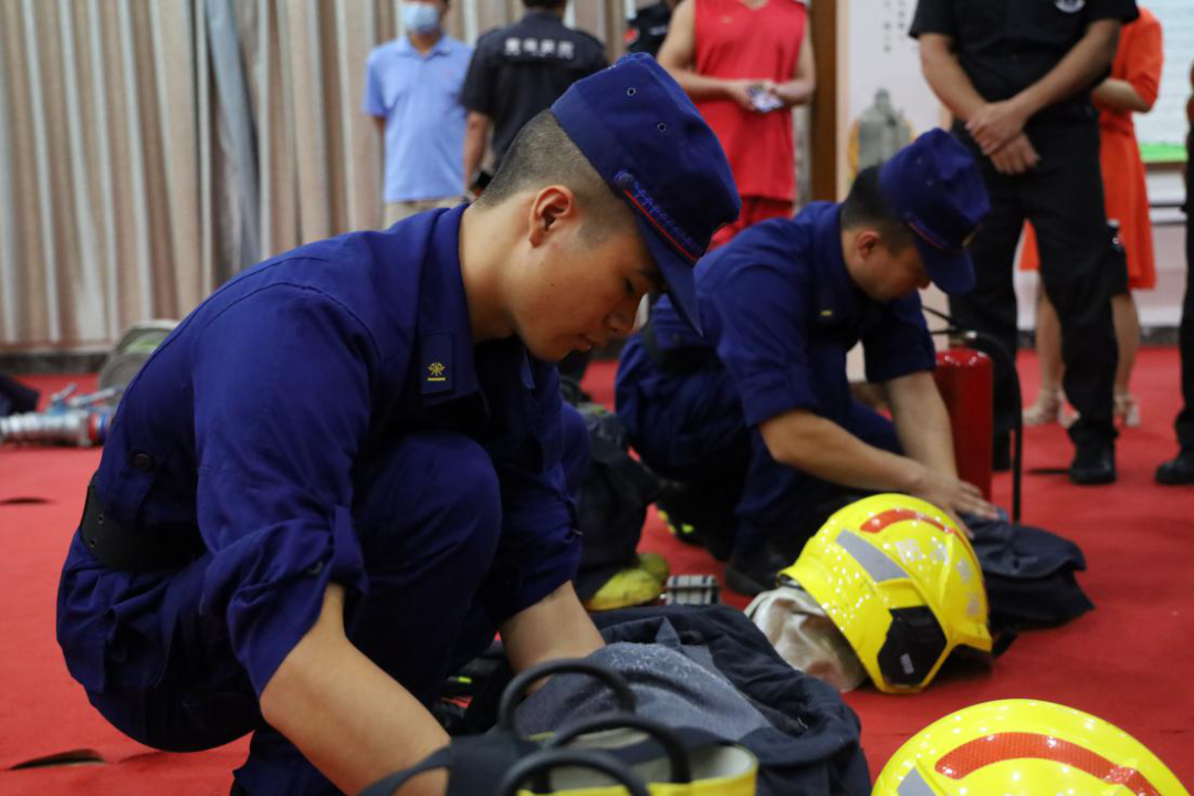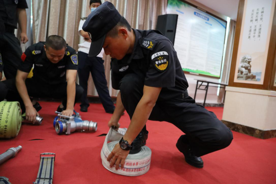 培训活动中,消防大队主要结合工作需要,讲解队列会操、初战灭火操、两盘水带连接、着装灭火的操作规范、要领、注意事项等内容,并现场进行了示范操作。