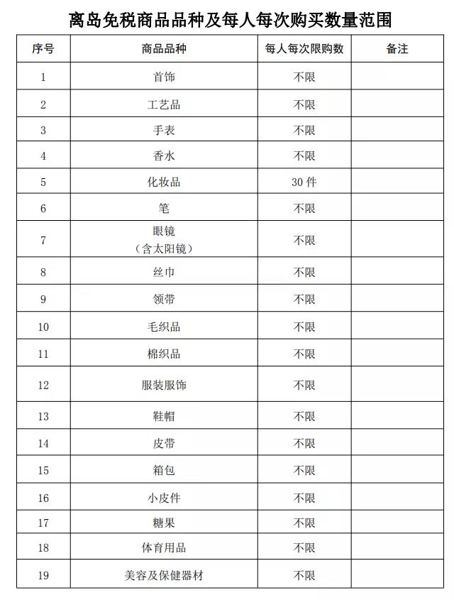2020年6月1日,党中央、国务院印发《海南自由贸易港建设总体方案》,提出“放宽离岛免税购物额度至每年每人10万元,扩大免税商品种类”。为落实《总体方案》要求,进一步释放政策效应,高质量建设自由贸易港,经国务院同意,财政部、海关总署、税务总局发布《关于海南离岛旅客免税购物政策的公告》,自2020年7月1日起实施。公告明确:离岛旅客每年每人免税购物额度为10万元,不限次;扩大免税商品种类,增加电子消费产品等7类消费者青睐商品;仅限定化妆品、手机和酒类商品的单次购买数量;旅客购买商品超出免税限额、限量的部分,照章征收进境物品进口税;具有免税品经销资格的经营主体可按规定参与海南离岛免税经营。