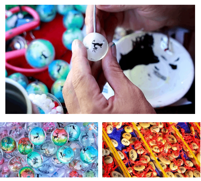 内画的画法是以特制的变形细笔,在玻璃、水晶、琥珀等材质的壶坯内,手绘出细致入微的画面,格调典雅、笔触精妙。