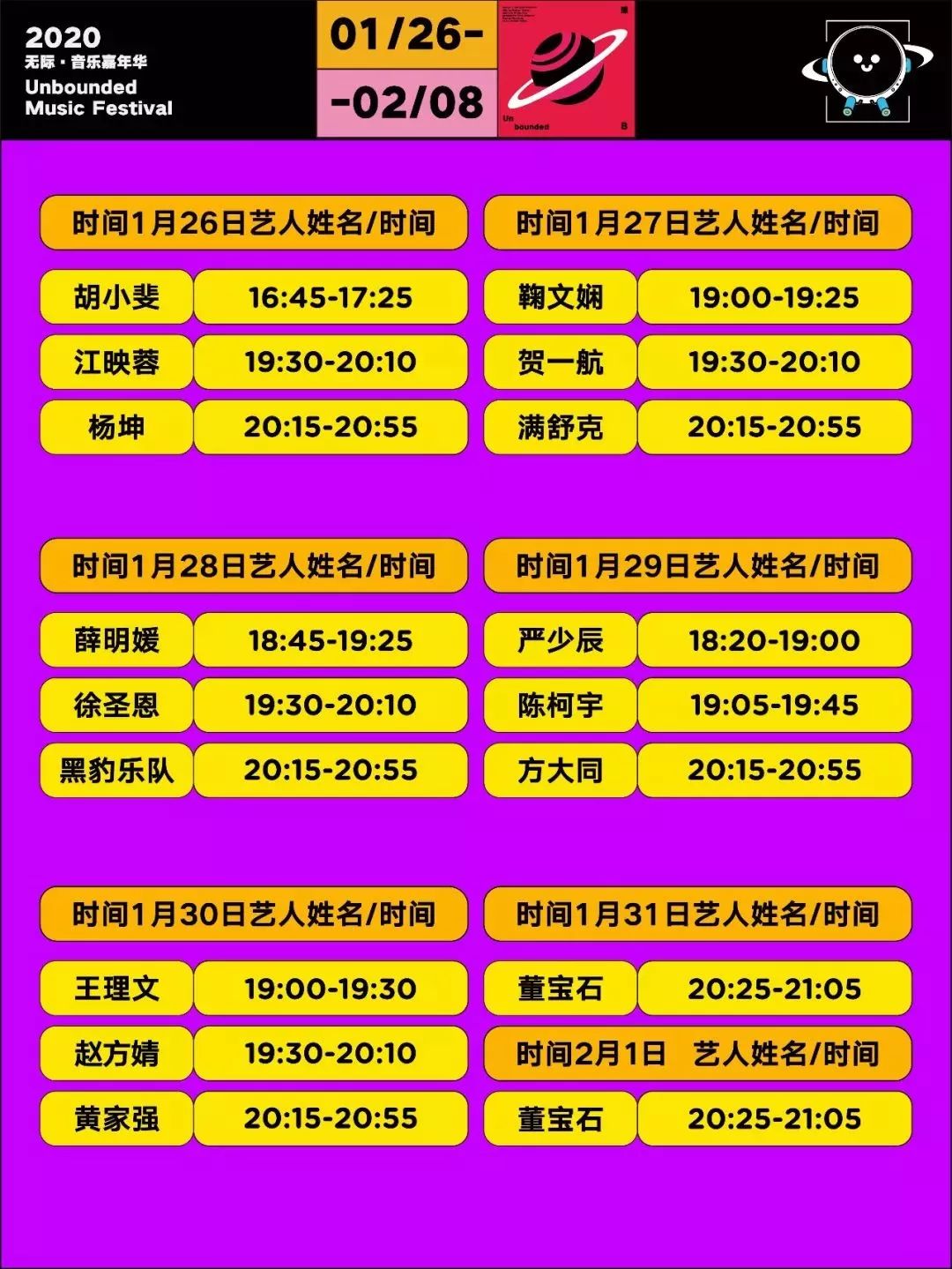 *音乐节联票使用时间为1月26日-2月1日14:00-22:00,逾期无效;