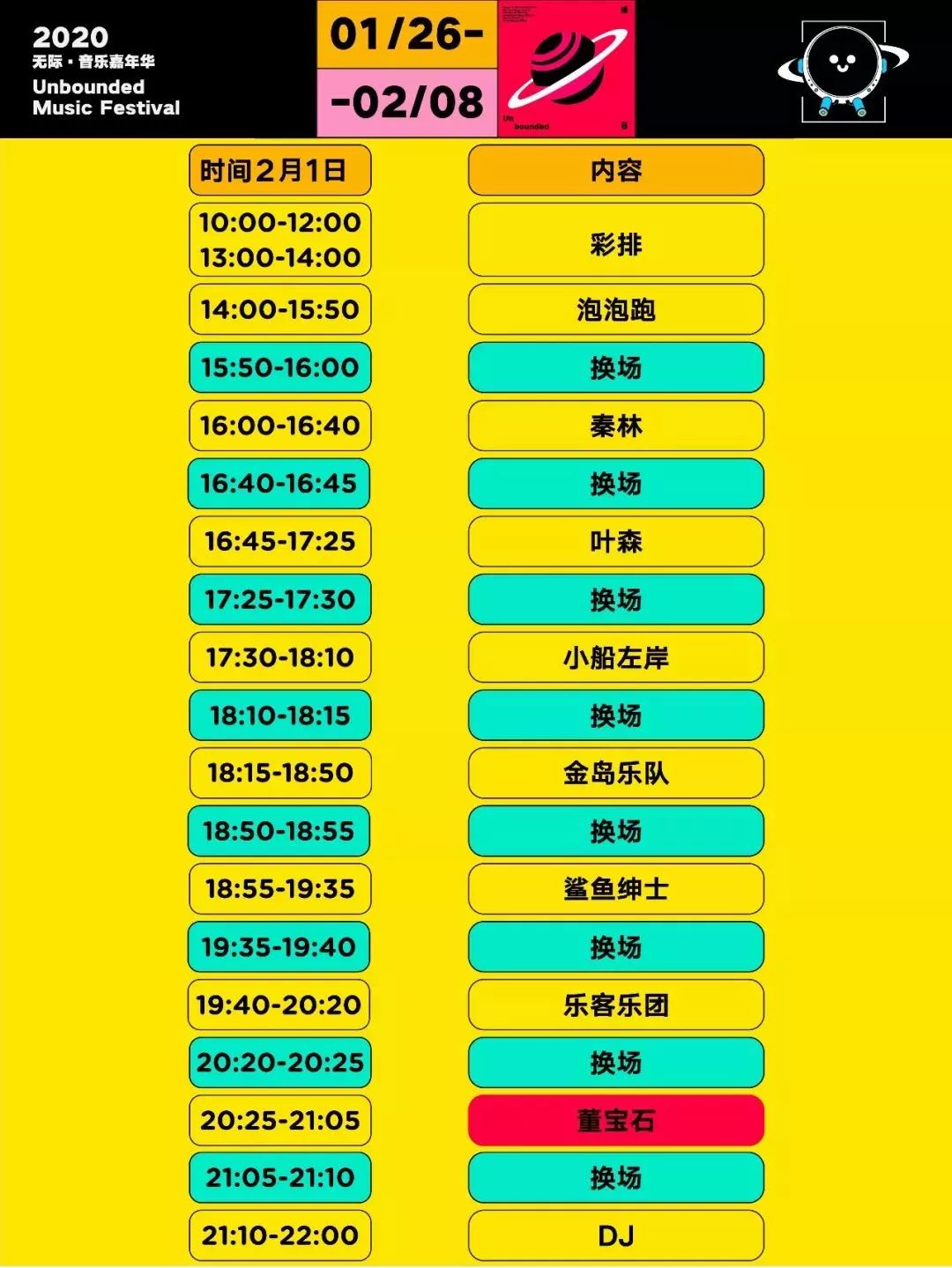 *音乐节单日单人普票/儿童普票使用时间为1月26日-2月1日期间任选一天前往,时间为14:00-22:00,逾期无效;