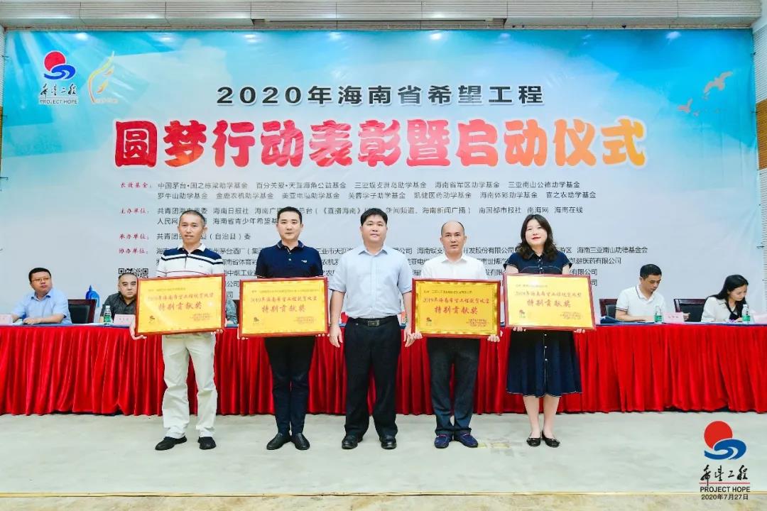 近日,由共青团海南省委、海南省青少年希望基金会等单位举办的“2020年海南省希望工程圆梦行动表彰暨启用仪式”在海口正式启动。启动仪式上,来自海南全省的31家单位和个人踊跃捐款1193.5万元支持2020年海南省希望工程圆梦行动,助力脱贫攻坚。天涯海角游览区受邀参加本次圆梦行动暨表彰仪式,并被授予“2019年海南希望工程脱贫攻坚特别贡献奖”。