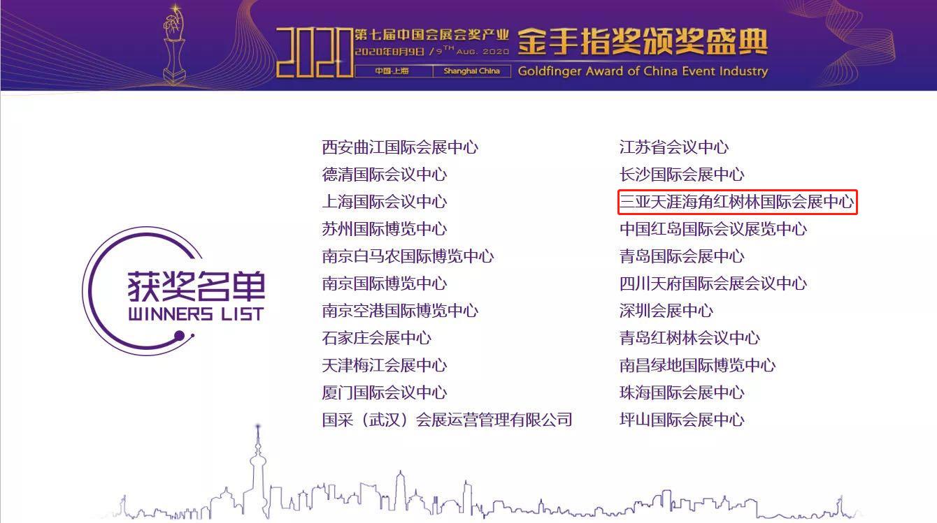 三亚旅文集团旗下三亚天涯海角红树林国际会展中心在“中国会展产业会”上荣获“最具影响力会展中心金手指奖”