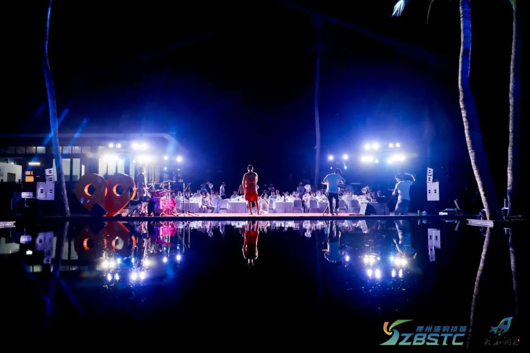 最酷炫的舞台给最浪漫的你~主办方在大小洞天旅游区内的南海福门前搭建起活动舞台,面朝大海,黑夜中亮起深蓝色的聚光灯,翻涌的海浪声中似乎还夹杂着嘉宾们的心跳声~
