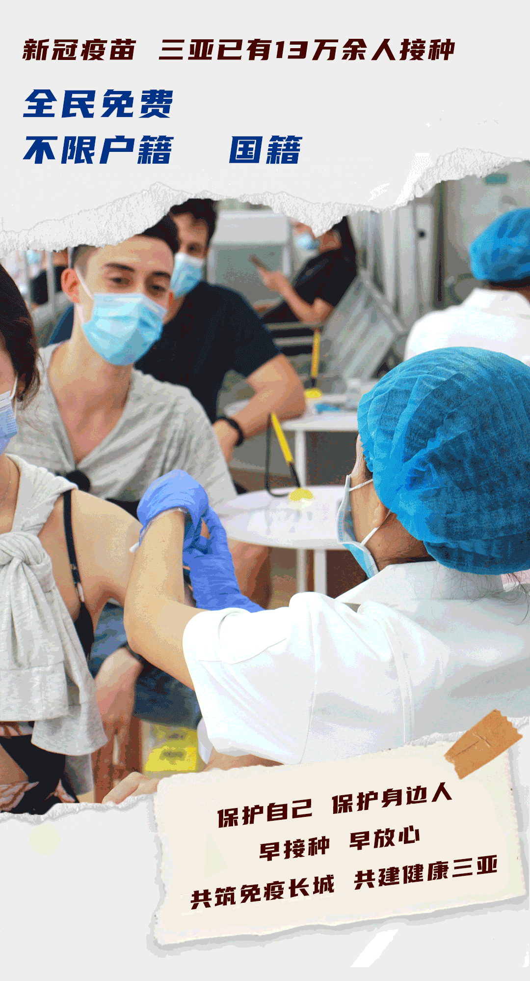全民免费,不限户籍、国籍。目前,三亚市本阶段免费新冠疫苗接种工作正有序进行,在三亚生活、工作的人员接种新冠疫苗的热情越来越高。3月1日至16日22时,本市共有13.8万人完成本阶段第一针次接种。